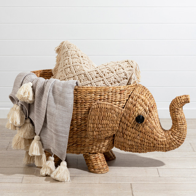 Rattan Elephant Landry/ Toy Basket with Lid