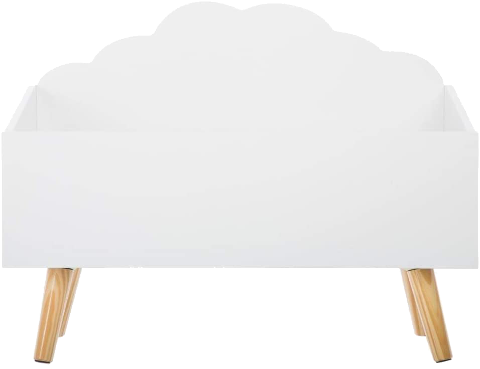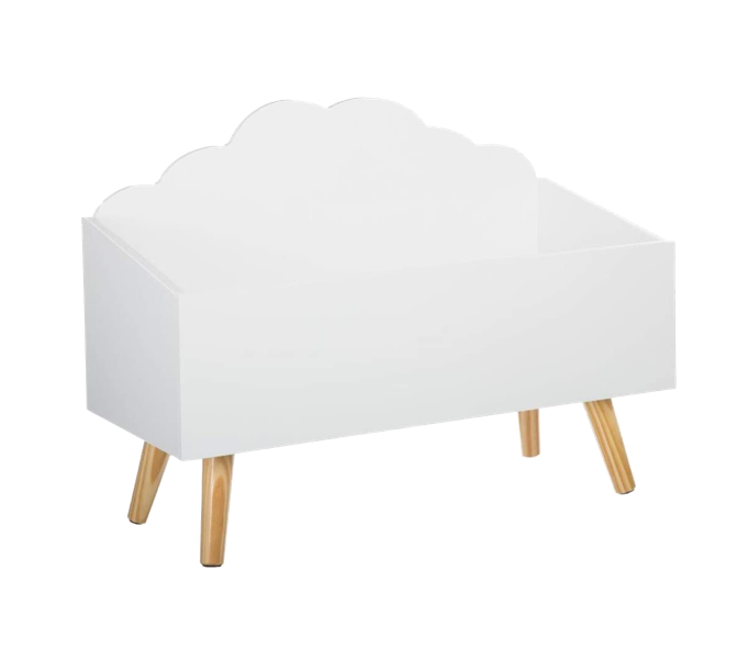 Toy box for children on 4 raised legs to enable easy cleaning.