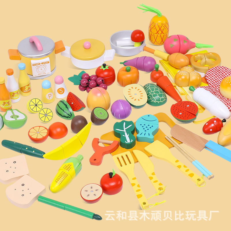 2022 Wooden Vegetables And Fruits Toys Toy Fruit Other Pretend Play & Preschool Luxury Cutlery Family Barrel